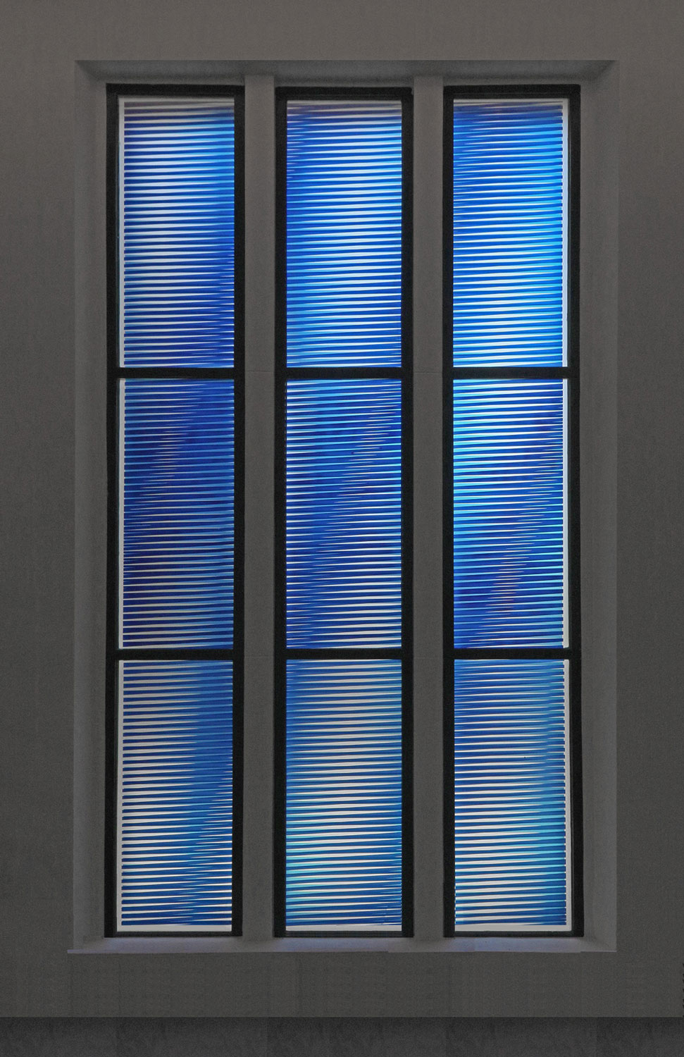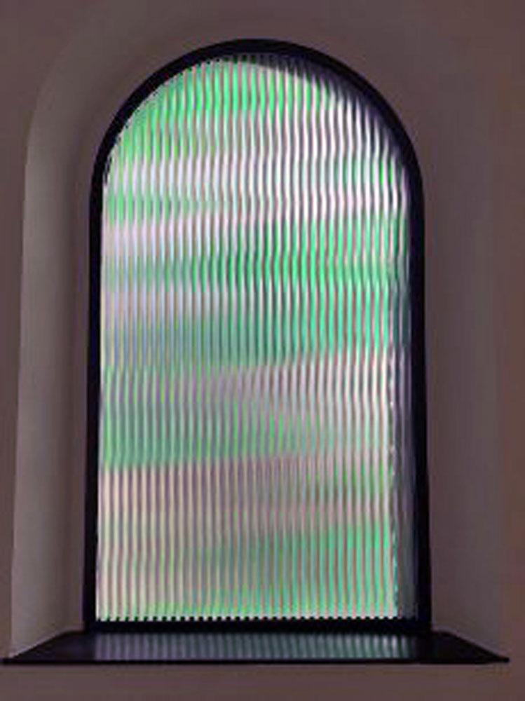 Teilverglasung: 1 Fenster in der Verabschiedungskapelle, 5 Rundfenster in den Wandnischen, 5 Fenster im Kreuzgang, 1 Fenster im Eingangsbereich, 1. Bauabschnitt 2018